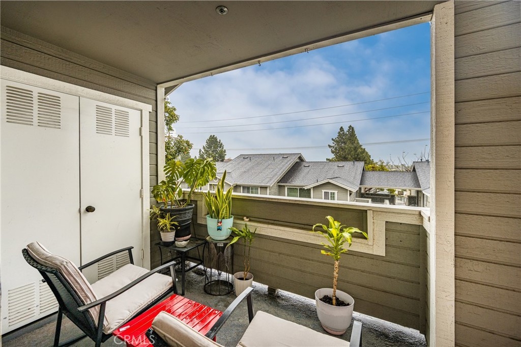 Located in the desirable Chelsea Court community of Santa Ana, this well-maintained 2-bedroom, 2-bath condominium offers a functional layout featuring two spacious primary suites, ideal for flexible living or income potential. Cathedral ceilings create an open, airy feel throughout the main living areas, complemented by a roomy kitchen with ample storage and workspace. Enjoy two private balconies — one off the living room and another off the rear bedroom with separate stair access — providing indoor-outdoor versatility. The home includes dual stair entrances, an attached two-car garage, in-unit washer and dryer, and a newer AC unit. Community improvements include newer roof replacements, adding long-term value and peace of mind. Chelsea Court offers well-maintained grounds and convenient access to shopping, dining, and major freeways, making this an excellent opportunity for both owner-occupants and investors.