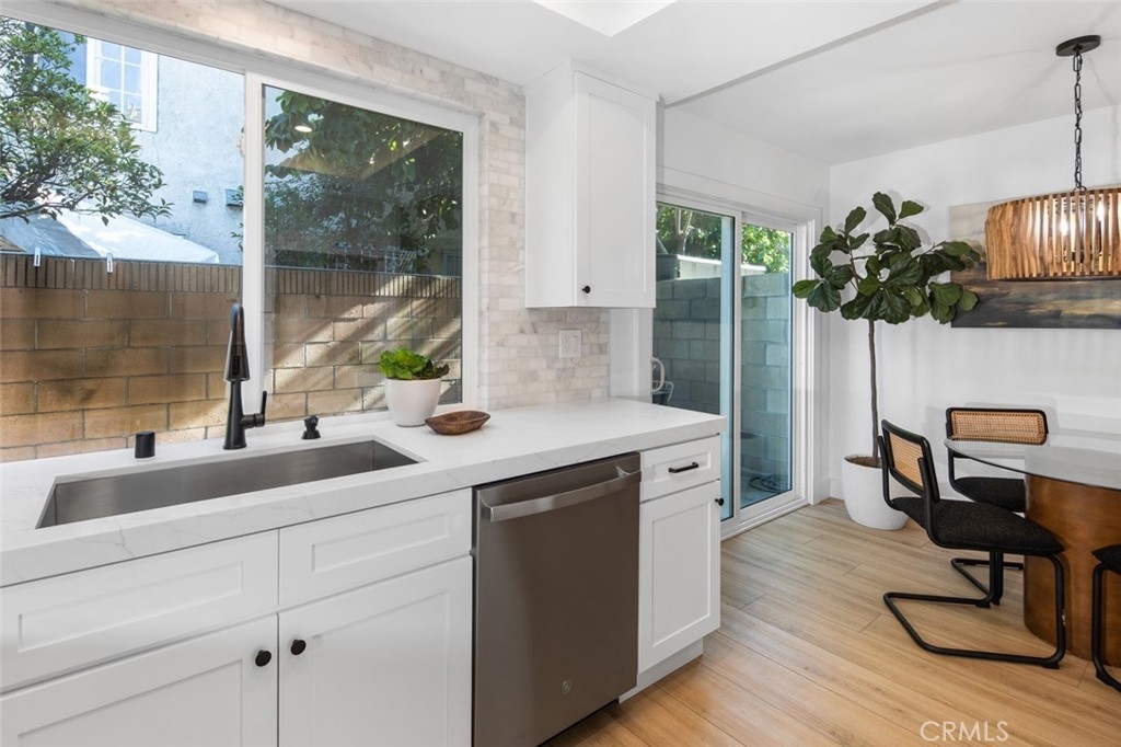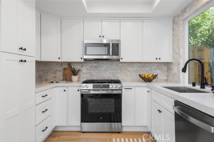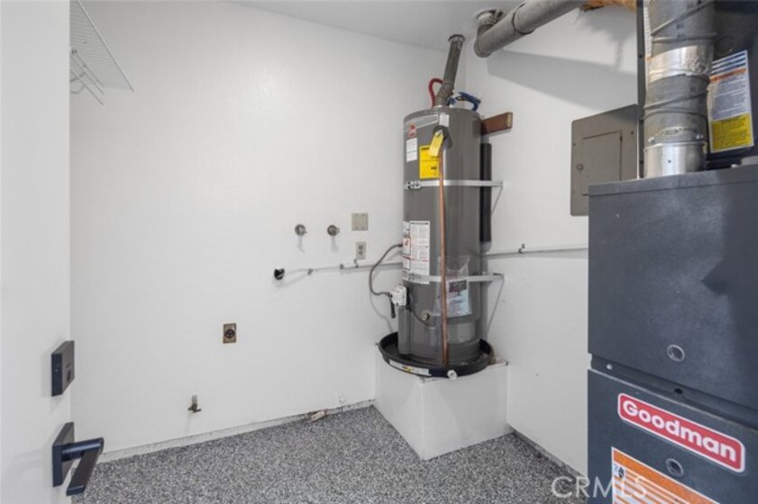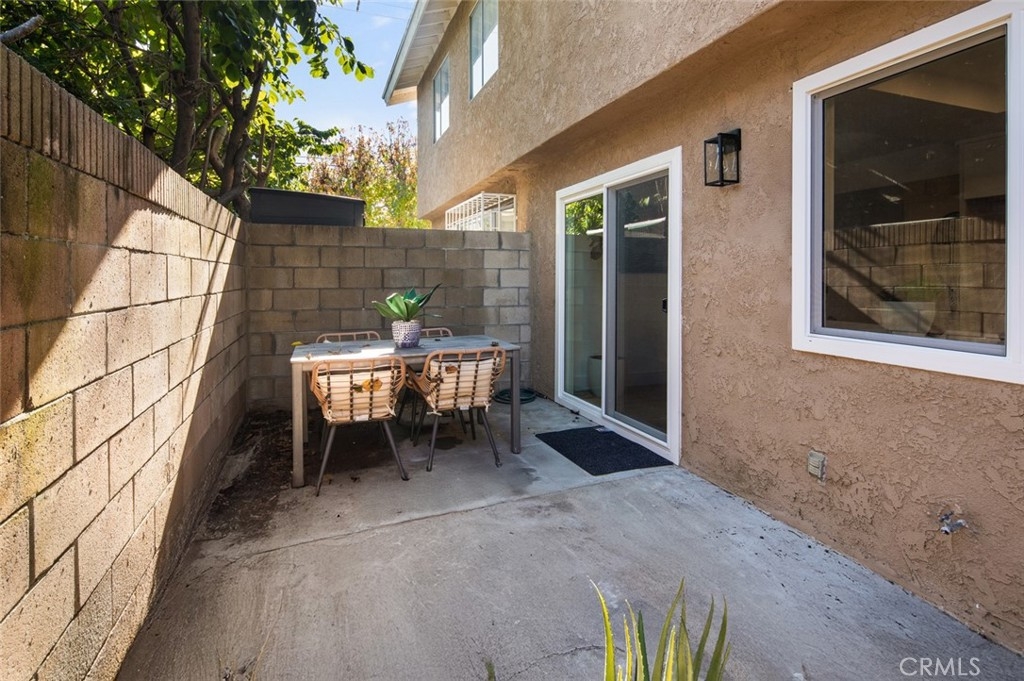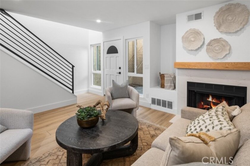 Spacious Townhome with a 2 car garage, in a well maintained and Gated Community. Newly renovated to include dual pane windows and sliders throughout, finished 2 car garage with epoxy flooring, energy efficient recessed lighting, new water heater and AC! Enter into your private front patio, gated from the garage, perfect for a quiet outdoor space. You are welcomed into the living room with a gas burning fireplace and luxury vinyl wood toned flooring that is consistent throughout the home. Your new kitchen and casual dining area features, white shaker cabinetry, quartz countertops, elegant tile backsplash, designer lighting, and new stainless steel appliances including a gas range. Sliding glass doors exit to your nicely sized and private back patio. A half bathroom down accommodates your guests. Your primary bedroom upstairs showcases a large walk-in closet, vaulted ceilings and access to the newly remodeled full bathroom. Your second bedroom upstairs is also substantial in size. Off of the garage with a separate entry, is a full sized individual laundry room. This gated community features a grass play area for kids or dogs and an inground pool and hot tub!