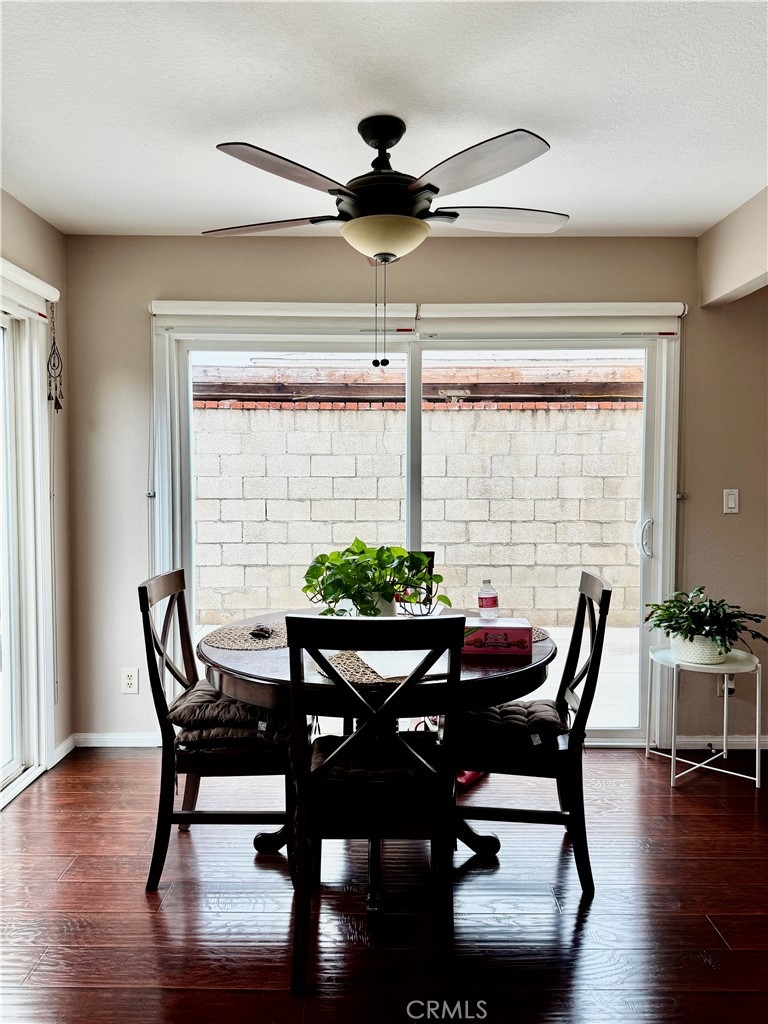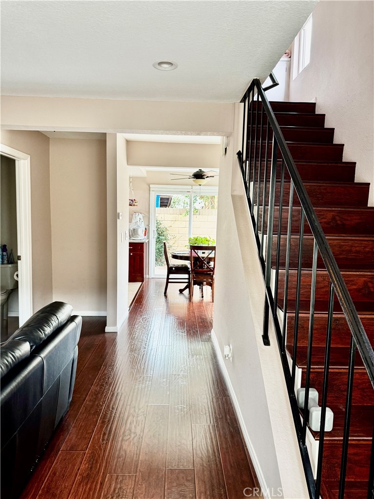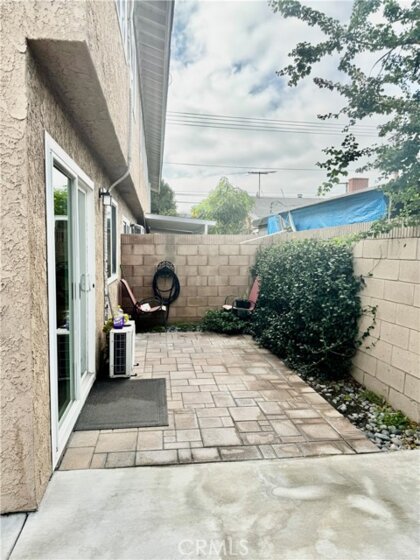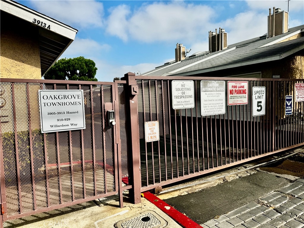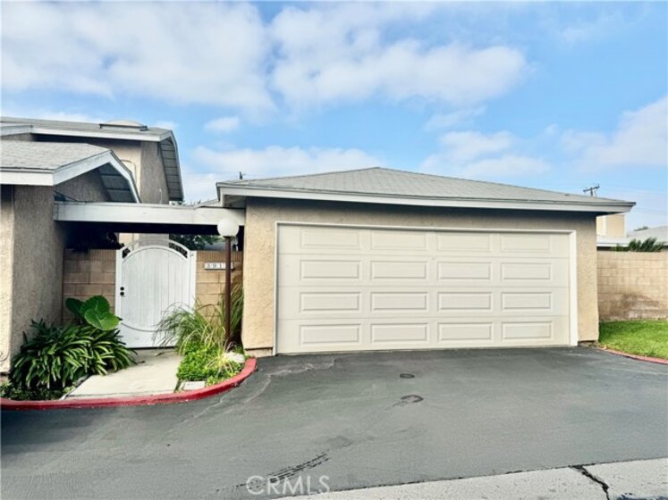 Oak Grove Townhomes --- Gated Community. Cross streets: W/Harbor, N/Hazard. End Unit -- only 1 neighbor. Excellent location. Upgraded 2-story townhouse with vaulted ceiling. 2 bed, 1.5 baths. 2-car detached garage with large Private Patio -- wrap around patio. Central heating and central air conditioning. Dual-paned windows. Nice and bright with skylights and natural light. Gourmet kitchen with custom cherrywood cabinets, granite countertops, stainless steel appliances, recessed lighting, modern fixtures. Kitchen opens to dining room with ceiling fan. Cozy fireplace in living room. Bathrooms have granite countertops and modern fixtures. Custom built-in closets in both upstairs bedrooms. Walk-in Closet. Hard flooring throughout downstairs. Individual laundry by front patio. Garden Grove Unified School District – Award Winning Schools: R.F. Hazard Elementary – ranks 8; Irvine Intermediate – 9; Santiago High – 6. HOA pool, spa, greenbelt. HOA Dues include trash, building insurance, exterior and common areas. Walking distance to restaurants, shopping, parks, churches…