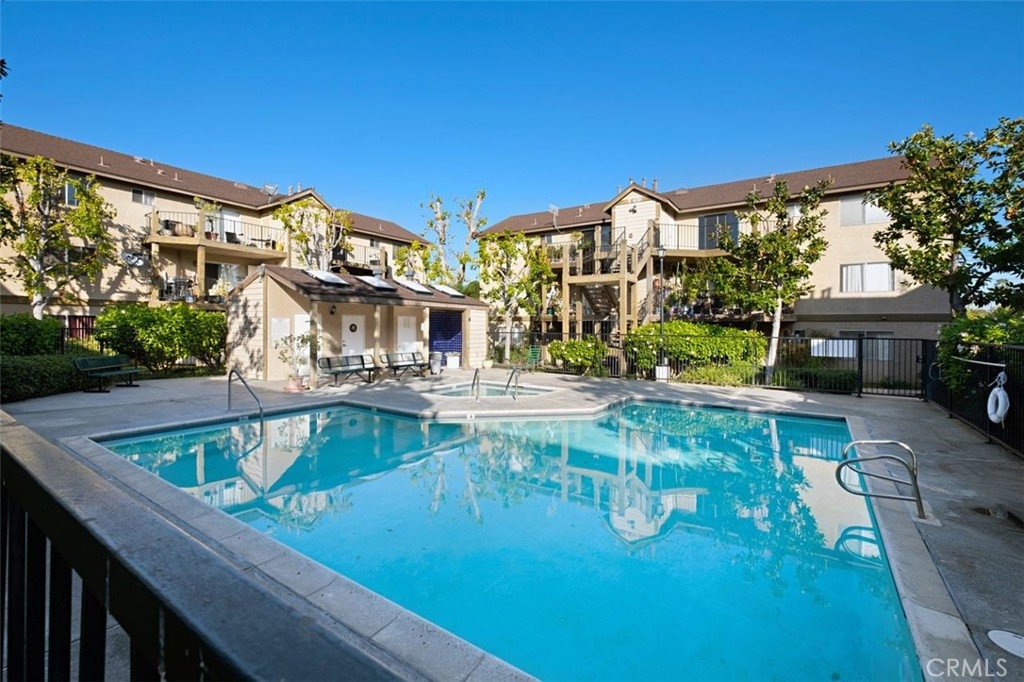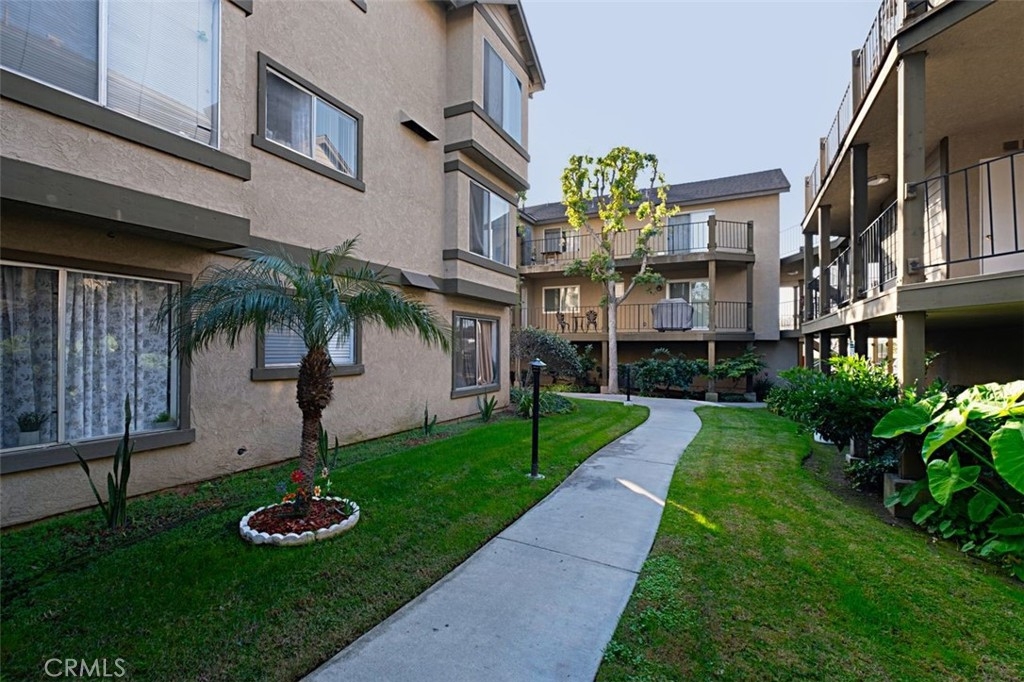 Updated in 2022, this spacious 2-bedroom, 1-bath home is perfect for first-time buyers or investors! LOW HOA DUES and NO MELLO ROOS TAXES! Located in the gated Westerly Park community with access to a pool and spa, this upper-level unit offers both privacy and convenience, with nobody below, and a great view of the garden courtyard. The home features tile floors throughout the main living areas, a comfortable living room, dining room, and a well-appointed kitchen with refaced cabinets. In-unit laundry (washer and dryer included), central heat and AC add to the ease of living. Recent upgrades include a new bathroom vanity, and a new water heater. Two reserved parking spaces include a 1-car garage and an additional reserved parking spot. Situated in the highly regarded Garden Grove Unified School District near excellent schools, close to shopping, and with easy freeway access, this home is priced to sell—a rare find in a prime location!