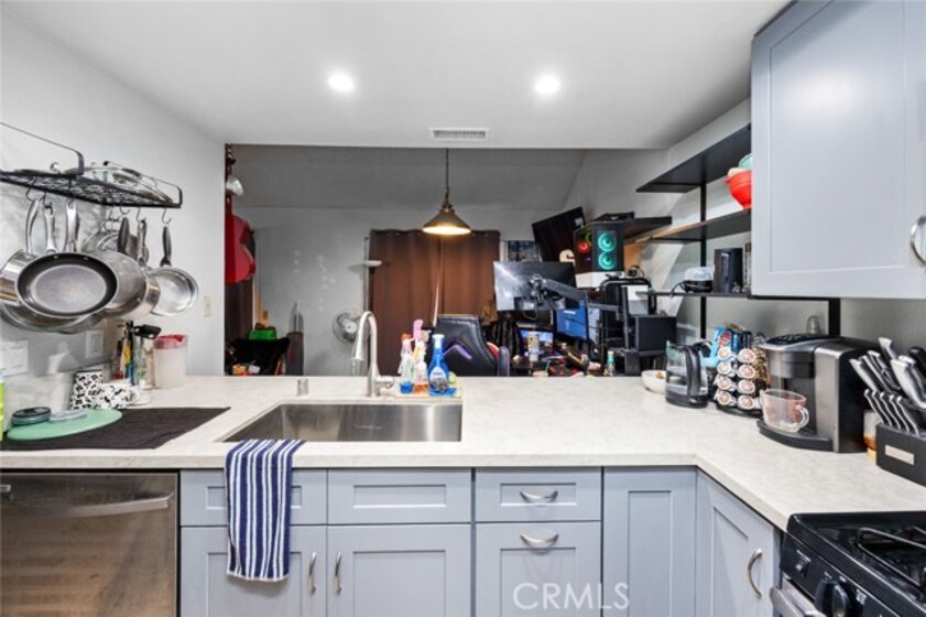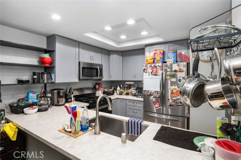 Tucked away in a gated community, this charming end-unit condominium is the perfect place to call home. With 2 bedrooms, 1.25 bathrooms, and a private balcony, it offers both comfort and convenience for everyday living. Step inside to find soaring vaulted ceilings, a recently remodeled kitchen with quartz countertops, modern cabinetry, and stainless steel appliances. The main bathroom has been tastefully updated, including a sleek tub/shower stall. The cozy fireplace and central A/C make the living space perfect year-round. This unit also offers plenty of parking options with 2 detached single car garages plus an additional pad for a third vehicle, along with in-unit washer/dryer hookups. All appliances are included, making this a true move-in ready home. Located in a gated community, residents enjoy access to a sparkling pool, jacuzzi, and well-maintained grounds. The prime location offers quick access to the 22 freeway, top restaurants, parks, schools, and is just 20 minutes from the beach, Disneyland, local airports, and plenty of shopping options at South Coast Plaza mall. This Santa Ana gem has it all—style, space, and convenience. Don’t miss the opportunity to make it yours!
