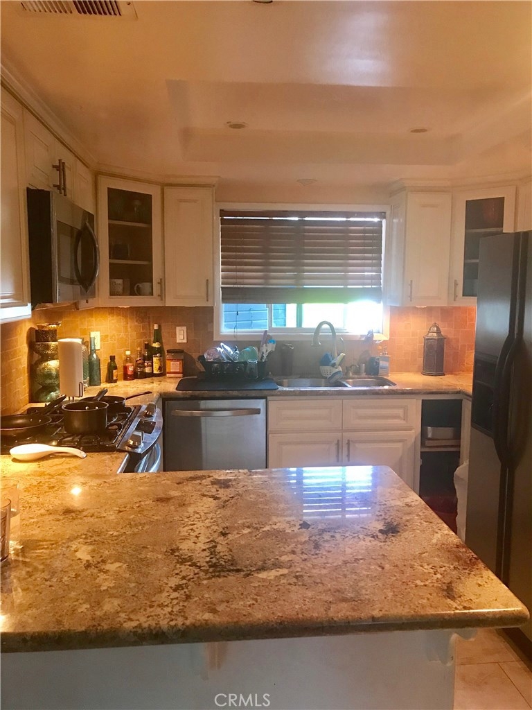 Buyers could not qualify, home is back on the market!! Beautiful 3 bedroom 2.5 bathroom home with a 2-car attached garage in Old Stonegate. One of the largest floor plans in the complex. This home has central AC/heat and cathedral ceilings with an elegant wooden stairway. Recently upgraded with dark wood flooring and granite counters in baths. Other features include updated kitchen with granite counters, new ceramic tile in living room/dining area, and fireplace in the living room. Property has newer interior paint, plumbing fixtures, stainless steel kitchen appliances, with a stainless steel refrigerator that is included. This home is just minutes from the freeway and is close to shopping and schools. Lovely gated community offers pool, jacuzzi and park.