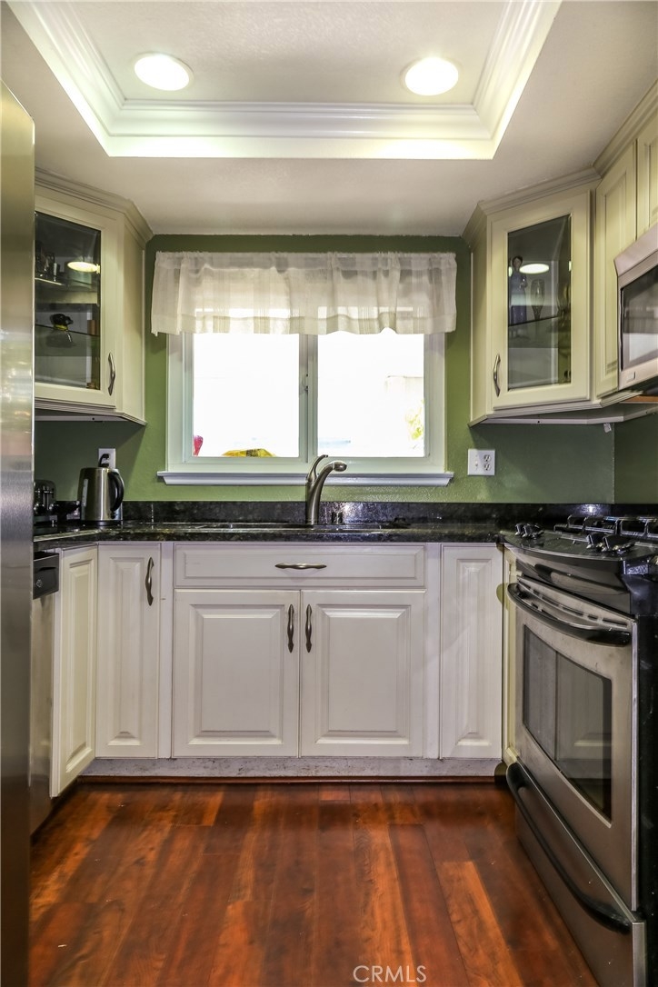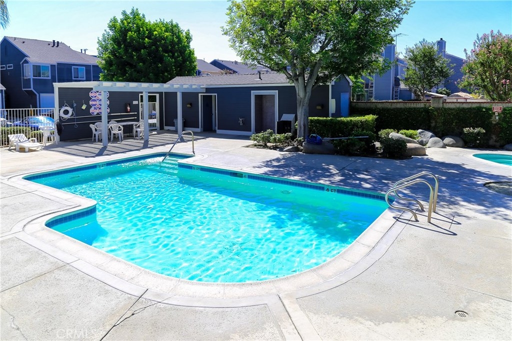 This home features two master suites, each with their own baths, that have been upgraded with laminate wood floors and granite counter tops. Large walk in closets. The kitchen has been upgraded with granite counter tops and newer off white cabinets . The flooring is wood laminate through out the living room . Sliding glass doors lead to a inviting patio surrounded with wall for privacy. It has concrete slab floor for barbecuing and visiting with friends and family. This is a small private, gated community close to shopping, schools and freeway access. This home features central cooling and heating. Show and sell this special .