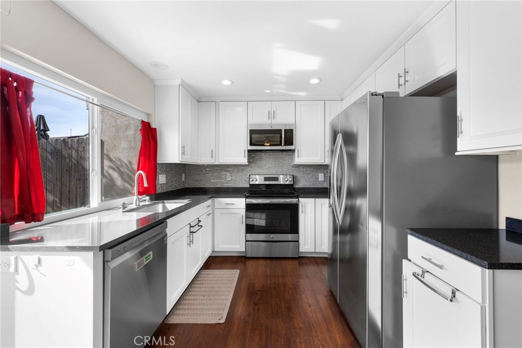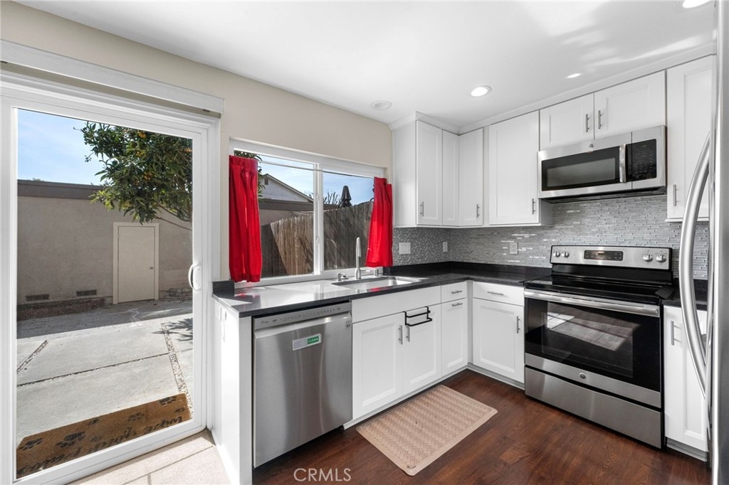 LOCATED IN THE HEART OF THE VIBRANT & MUCH SOUGHT BRADFORD PLACE COMMUNITY, TRULY THE LOCATION & HOME YOU DON’T WANT TO MISS! INCREDIBLE REMODELED TOWNHOME OFFERS A 2 CAR GARAGE, WHICH IS JUST STEPS ACROSS THE LARGE ENCLOSED REAR PATIO. IDEALLY PLACED WITHIN THE COMMUNITY, A TRANQUIL PRIVATE SPOT, SURROUNDED BY GREENBELTS & MATURE TREES WITH A PARK & INTERMEDIATE SCHOOL WALKING DISTANCE AWAY. NEAR THE COSTA MESA BORDER AND A FEW MINUTE DRIVE TAKES YOU TO WORLD FAMOUS SOUTH COAST PLAZA & ALL THE SHOPS, RESTAURANTS & ENTERTAINMENT OFFERED IN THAT WELL KNOWN & DIVERSE AREA OF COSTA MESA. THE THOUGHTFUL FLOORPLAN PROVIDES A SUNLIT INTERIOR WITH AN INVITING & EXPANSIVE LIVING ROOM WHICH LOOKS OUT TO THE PARKLIKE SURROUNDINGS. THE REMODELED KITCHEN PROVIDES A DINETTE AREA, NEW CABINETRY, IN CABINET PULL-OUT DRAWERS & A COOKIE SHEET ORGANIZER. GRANITE COUNTERTOPS WITH SUBWAY GLASS BACKSPLASH, NEWER STAINLESS APPLIANCES INCLUDING BUILT-IN MICROWAVE, RECESSED LIGHTING & LIGHTED FAN OVER DINEETTE. YOU WILL BE PLEASED WITH THE GENEROUS CABINET SPACE! NEWER SLIDING DOORS OPEN TO SHADED PATIO, ROOM TO PLANT YOUR OWN GARDEN, BBQ RELAX & ENTERTAIN. A MAIN LEVEL POWDER ROOM OFFERS GRANITE COUNTERS ATOP NEW CABINETRY, LIGHTING & HARDWARE. UPSTAIRS FINDS PRIMARY SUITE OFFERING VANITY WITH GRANITE TOPPED NEWER COUNTERS, LIGHTING & HARDWARE. SECONDARY GUEST BATH ALSO OFFERS NEW COUNTERS, LIGHTING & HARDWARE. THIS PRISTINE HOME PROVIDES LIGHTED CEILING FANS THROUGH-OUT THE HOME, NEW HEATING SYSTEM, NEW THERMOSTAT NEWER WINDOWS & CUSTOM TOUCHES THROUGH-OUT. AN EXPANSIVE WALK-IN CLOSET ON MAIN LEVEL WILL ADD TO THE STORAGE OFFERED HERE. THE 2 CAR GARAGE YIELDS OVERHEAD STORAGE AND INCLUDED WASHER/DRYER. BRADFORD PLACE OFFERS RESIDENTS A POOL, CLUBHOUSE, SAUNA, SECURITY MONITORING & MAINTENANCE OF FRONT YARDS. PLENTIFUL GUEST PARKING IS ALSO AN ENORMOUS HELP! THIS FAMILY FRIENDLY NEIGHBORHOOD IS WALKING DISTANCE TO DINING & SHOPPING OPTIONS, LILLIE KING PARK & PLAYGROUND & MACARTHUR INTERMEDIATE SCHOOL. EASY ACCESS TO MAJOR HIGHWAYS & FREEWAYS IS ALWAYS A PLUS. YOU WILL FIND THIS HOME OFFERS AN ENTRANCING & CAPTIVATING LIVING SPACE, THE WARM INVITING PLACE YOU WILL LOOK FORWARD TO COMING HOME TO EVERY DAY!