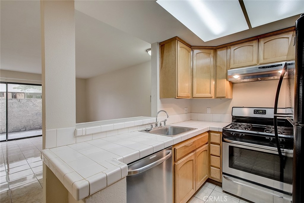 This newly painted, end unit on the first floor is ready for its new owners. The kitchen features newer appliances, included refrigerator and separate eating area. The living room flows seamlessly from the kitchen and features a slider to a private patio. The master suite features a walk in closet, and an en suite bathroom with vanity, shower & tub. The secondary bedroom is a generous size and shares the full hall bathroom. Convenient parking, laundry and gated community. Amenities in the community include: on site security, laundry facility, community pool, and gated playground. Next to the Santa Ana Downtown Historic District and the fourth street market. Close distance to restaurants, supermarkets, shops, and schools. Water and trash utilities are included in HOA dues. Welcome Home!