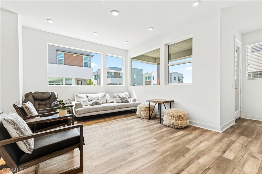 Welcome to this beautifully maintained 3-bedroom, 2.5-bathroom corner-unit townhome nestled in a secure gated community. Enjoy an abundance of natural light throughout the 1,564 sqft of thoughtfully designed living space. Situated on a desirable corner lot, this home offers enhanced privacy and a bright, airy ambiance. The open floor plan features a spacious living area, a well-appointed kitchen, and a convenient powder room--perfect for entertaining and guest.Upstairs, you'll find three comfortable bedrooms, including a generous primary suite with a private bath and ample closet space.On the first floor, there's an office potential for any small business like nail salon, pilate work space etc. Located just 5 minutes from the Santa Ana Zoo, 10 minutes to South Coast Plaza, and moments from historic Old Town Tustin, retail shops, market place, dining, and major freeways--this home blends comfort with unbeatable convenience. Don't miss this rare opportunity to live in a light-filled home in one of the area's most sought-after gated communities! FURNITURE INCLUDED.