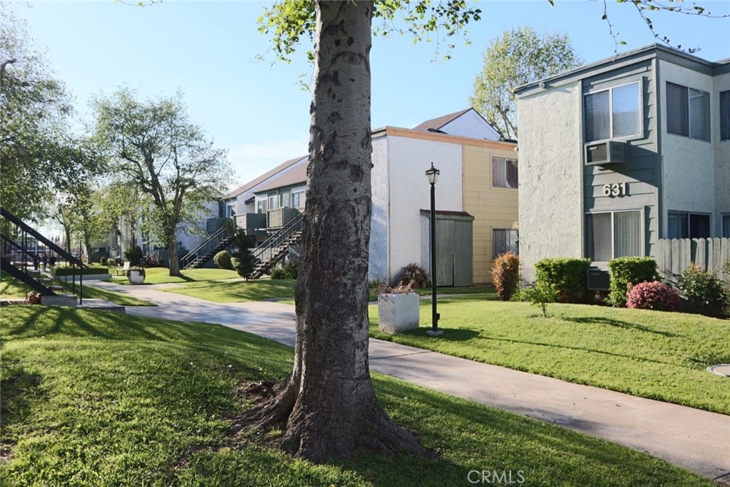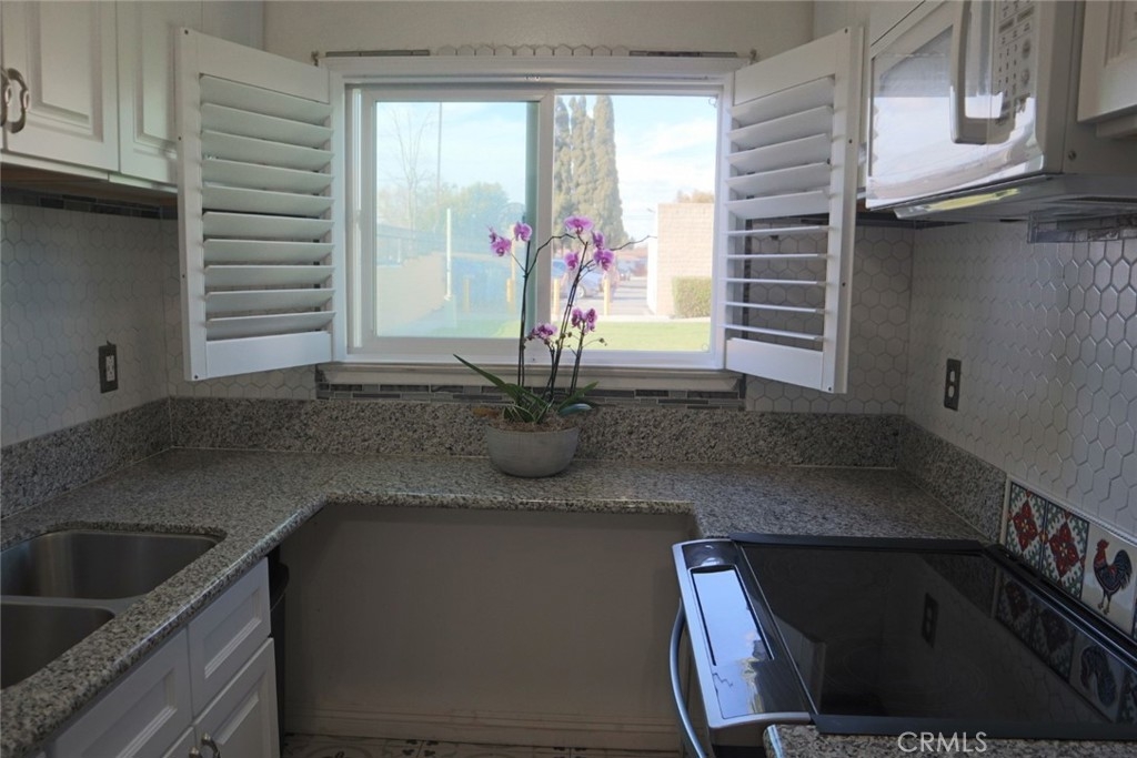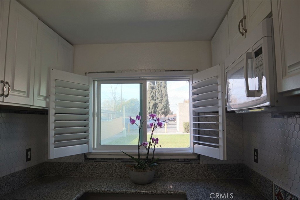 Charming lower level, one bedroom, one bath located near downtown. Enter into an inviting private front patio, ideal for enjoying a morning coffee. This cozy home includes a fully renovated kitchen with a wrap around granite countertop, ceramic backsplash, equipped with double outlets including a usb connection for your kitchen appliances creating this space into a culinary oasis. A unique feature is its additional private space that you can turn into an office. Key Highlights of this home include its bright kitchen with lots of natural light, textured ceiling with crown molding, recessed lighting, all new windows with plantation shutters, cool & heat installation, private patio with plank ceramic flooring, and one shared detached garage. Plus, the opportunity to request an additional parking space. Residents of Shadow Wood enjoy access to convenient laundry facilities, a sparkling pool area, club house, scenic paths, gate access, and on-site security guard services. HOA covers cold/hot water, trash, and gas. Don't miss the opportunity to call this gem home.