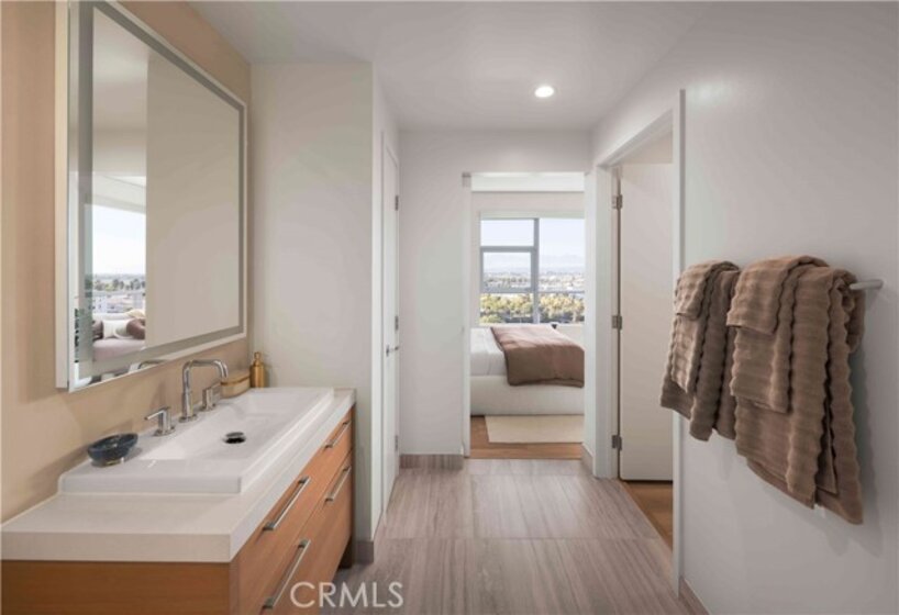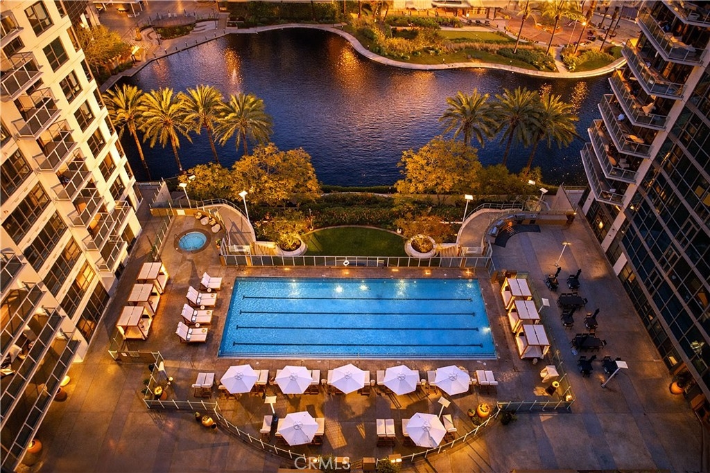 Welcome to Skyline OC — the tallest residential building in Orange County and South Coast's boldest condo transformation, where timeless design meets coastal energy. Ideally located in the heart of Orange County, Skyline OC offers the perfect balance of urban convenience and resort-style tranquility. Just moments from South Coast Plaza, world-class dining, performing arts, and major business hubs, this exceptional address puts everything within easy reach—while still feeling like a private retreat. Residence N403 is a one-of-a-kind opportunity at Skyline OC. This is the only floor plan of its kind and the only residence offering a half bath. This corner home is ideally positioned directly above the lake, with southeast-facing views that capture water, city, and morning light from expansive windows. At approximately 1,227 square feet, this one-bedroom residence features an open living and dining area that flows seamlessly to a private patio overlooking the lake. Wood flooring runs throughout the living, dining and kitchen, while complemented by a well-appointed kitchen. The spacious primary includes an en-suite bath, while the additional half bath offers rare convenience for guests. With its unique layout and coveted location, Residence N403 is one of the most distinctive homes at Skyline OC.