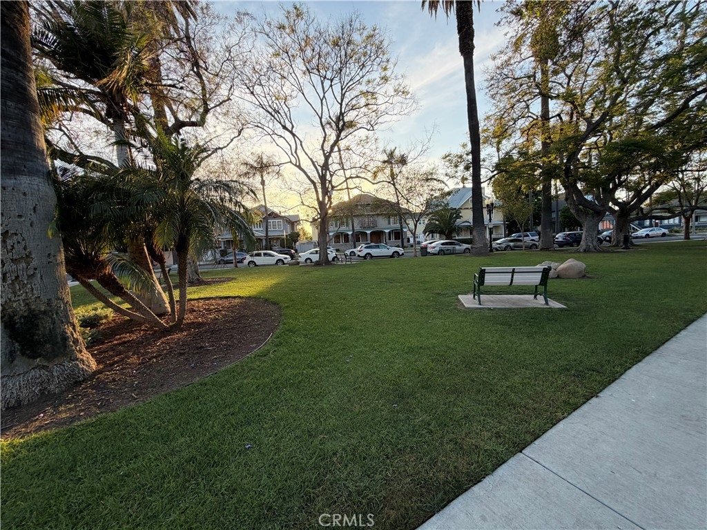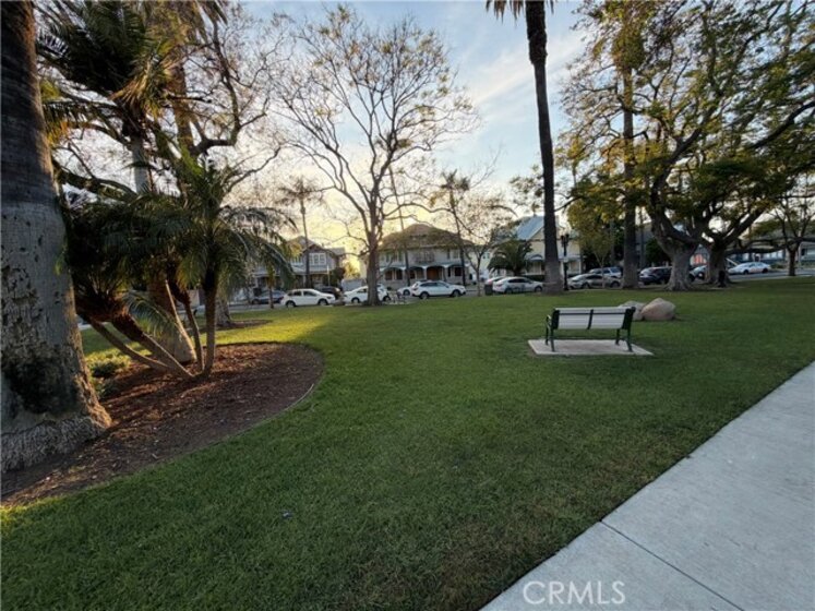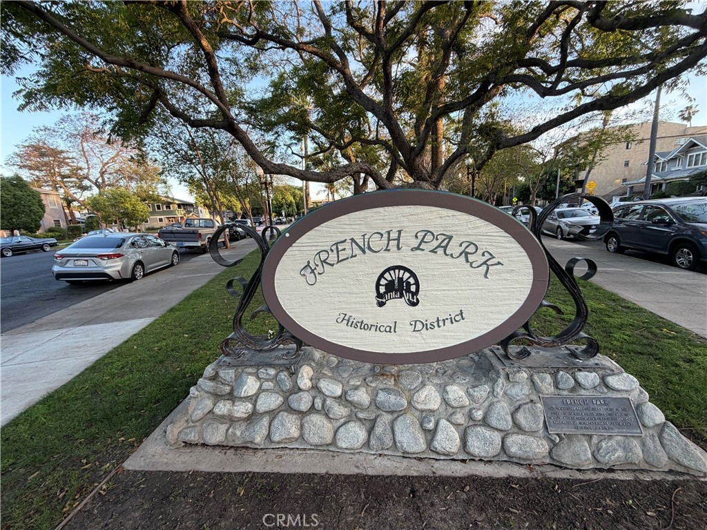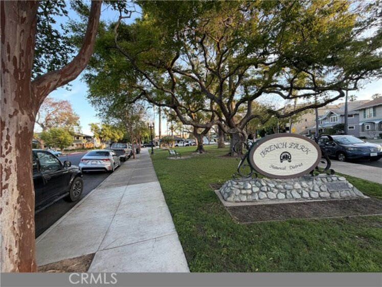 You’re looking out at Historical tree lined "French Park" right from your own living room patio. It’s easy to just sit back and watch the sun set and the world go by. Hard to find 1163 square foot ground floor end unit with a great foorplan includes spacious living room, separate dining room, main bedroom with in suite bathroom, additional nice sized bedroom and full hall bathroom, and an easy to maneuver kitchen with a window overlooking the lush center courtyard. Single detached garage is door #5. The Regency has only 15 total units with a low $198/mo. association dues. This location has great walkability to the heart of what makes Santa Ana tick. Property needs updating but has great bones including classic hardwood floors that need refinishing in addition to needing a fresh paint job and other creature upgrades one might desire. All and all, this would be a fun place to live.