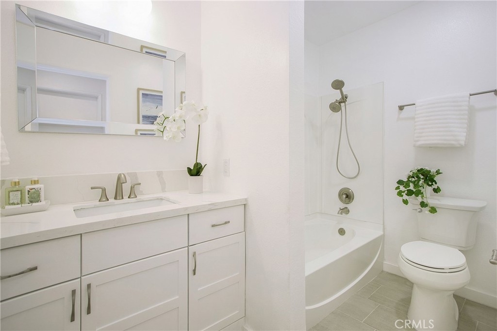 Welcome to an impeccably renovated haven in the heart of Santa Ana, CA. This stunning 1 bed, 1 bath sanctuary has undergone a complete transformation, showcasing the essence of modern living. Step inside to discover new vinyl flooring, freshly painted walls, the warm glow of recessed lighting that accents every corner with elegance and a brand-new thermostat that enhances your control over indoor climate for optimal comfort year-round. The kitchen is a dream, featuring exquisite quartz countertops, brand-new cabinets, and tasteful hardware, all harmonizing seamlessly to create a culinary oasis. The spacious bathroom includes a new toilet, a new marvelous quartz countertop, a tub/shower, new tile flooring and meticulous attention to detail. Relish in the convenience of an expansive walk-in closet, providing ample storage space for all your needs. Step out onto the enclosed patio and savor moments of tranquility in your secluded retreat. Rest assured knowing the building has recently undergone re-piping by the HOA, ensuring your comfort and convenience. Proximity to the laundry room adds to the ease of daily living, while the unit comes with not one, but two parking spaces - a coveted carport and a permitted space. Additional perks include storage in carport, access to a clubhouse, a private gym, and the ultimate indulgence of a pool and spa. Education excellence awaits with access to the award-winning Tustin School District. Enjoy seamless access to freeways, Disneyland, an array of restaurants, supermarkets, and shopping destinations. This is more than a home; it's a lifestyle defined by sophistication, convenience, and unparalleled comfort. Don't miss your chance to experience the pinnacle of Santa Ana living.
