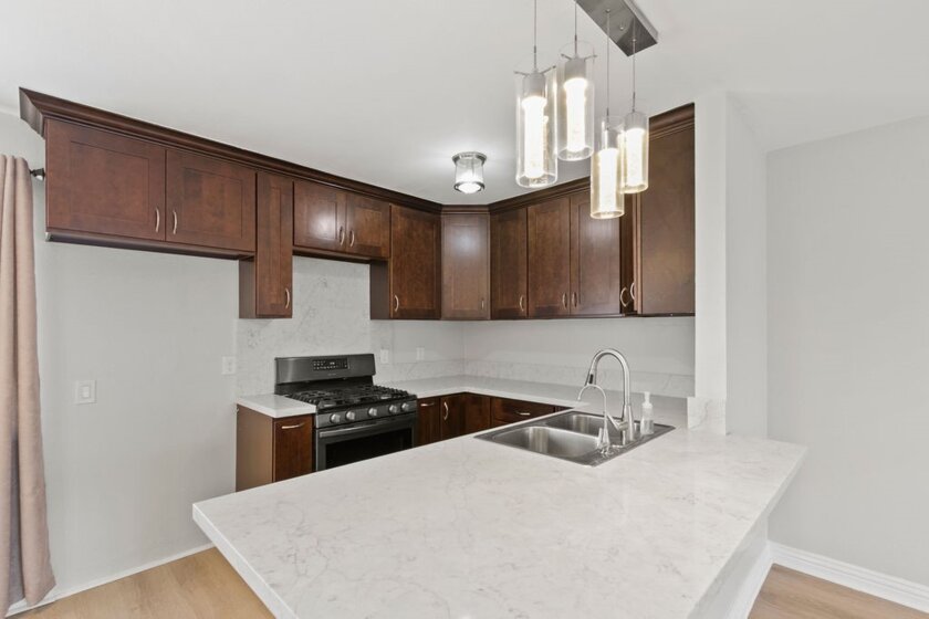 Welcome to The Redwoods, a vibrant resort-inspired community on the Tustin border, where modern comfort and natural tranquility unite. This fully upgraded end-unit condo offers rare privacy with no one above or below you, and an expansive private patio perfect for BBQs, gardening, or simply soaking in the California sunshine. Step inside to discover an open-concept layout bathed in natural light, enhanced by fresh designer paint and luxury vinyl plank flooring throughout. The custom kitchen is a showstopper—featuring sleek quartz countertops, a full quartz backsplash, stainless-steel gas range, and modern cabinetry that makes cooking and entertaining a joy. The spacious living and dining areas flow effortlessly, creating an inviting environment to relax or host. The tranquil bedroom retreat includes a walk-in closet, while the updated bathroom shines with a new vanity and contemporary finishes. Additional upgrades include a new central heating and air system, ensuring comfort year-round. Outside your door, The Redwoods community offers lush landscaping with peaceful streams and ponds, multiple pools and spas, a clubhouse with gym, and on-site management for worry-free living. HOA dues include water, gas, trash, and sewer—leaving only electricity for you to manage. With easy freeway access (5, 22 & 55), and zoned for the highly rated Tustin Unified School District, this home delivers the perfect balance of comfort, style, and convenience—ready for you to move in and enjoy resort-style living every day.