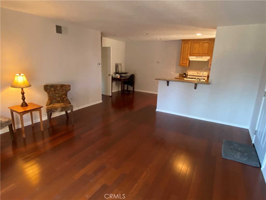 “The Redwoods” development on Cabrillo Park Dr is located in north Santa Ana, close to and included in the Tustin School District. This nicely updated 1 bedroom 1 bath unit is all on one level and located on the second floor with easy proximity to the beautiful community pool and club house. Steps away from the included covered parking space with built in storage. One separate permit per unit is available for additional parking of a second car, in an available open uncovered space. Enjoy the beautiful wood flooring in living and bedroom areas and tile in kitchen and bath. Nice outside deck in the front overlooking lovely landscaped open area. Newer cabinets in the kitchen, gas stove and oven, Stainless interior dishwasher and side by side refrigerator are included. Low homeowners dues of $325/mo include water and gas. Owner pays for electric and internet, cable etc. Professional quality Gym located in clubhouse is available for $50/yr. Development has several peaceful water features and walking paths. Well priced and easy to show. We understand there will be a special assessment this year for $110 for earthquake insurance. Bar-B-Ques available close to the unit for your convenience, across from the laundry room.